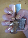 Next, to add some definiton to the nail,s add the thinnest layer of sparkle. I've used CHAMPAGNE.Sparkle is always great because it makes the manicure last. Chipping and any scratches are not noticeable, and you can freshen any manicure and make it last a day or two longer simply by adding a layer of sparkle!